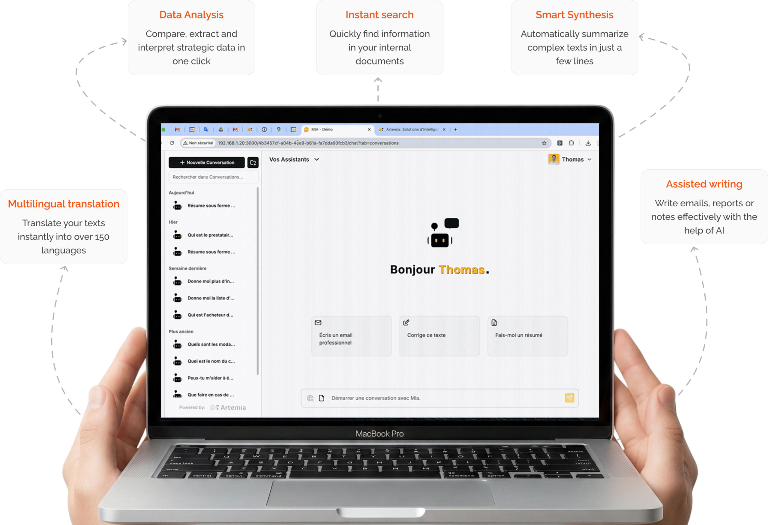 The security of your AI starts with suitable hosting. This is where your files will be stored and where the AI will carry out all its calculations, locally, guaranteeing its confidentiality.